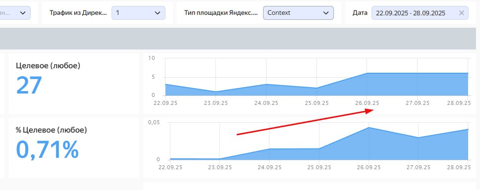 Чистка занимает 5-10 минут, на скрине - первая неделя после запуска новой кампании. Обратите внимание, как снижается количество переходов со "срам-площадок" и как растет количество целевых обращений.