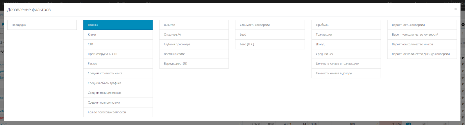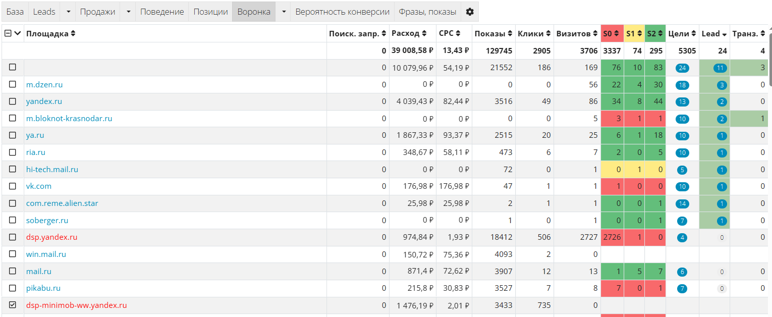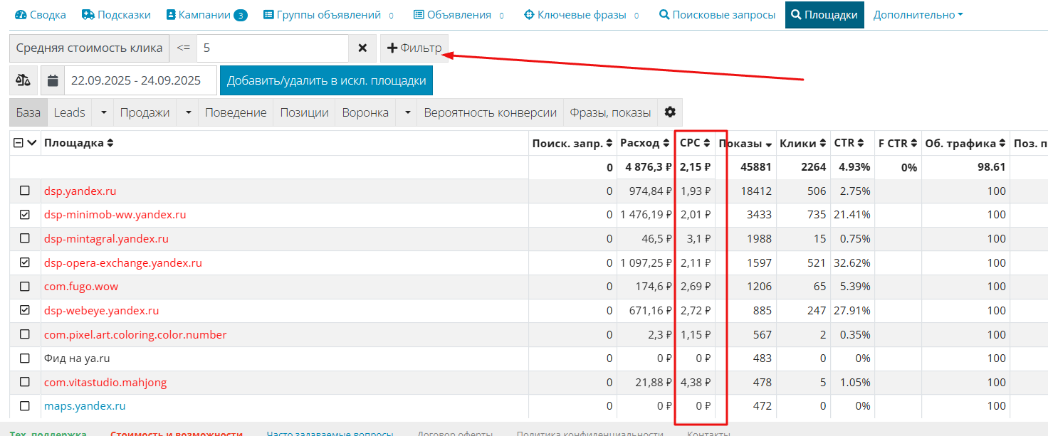 Комбинируя фильтры и оценивая площадки по показателям, вы за считанные минуты проведете оптимизацию проекта. Чтобы убедиться, попробуйте бесплатно, если что - инструкции здесь или в правом верхнем углу кабинета.